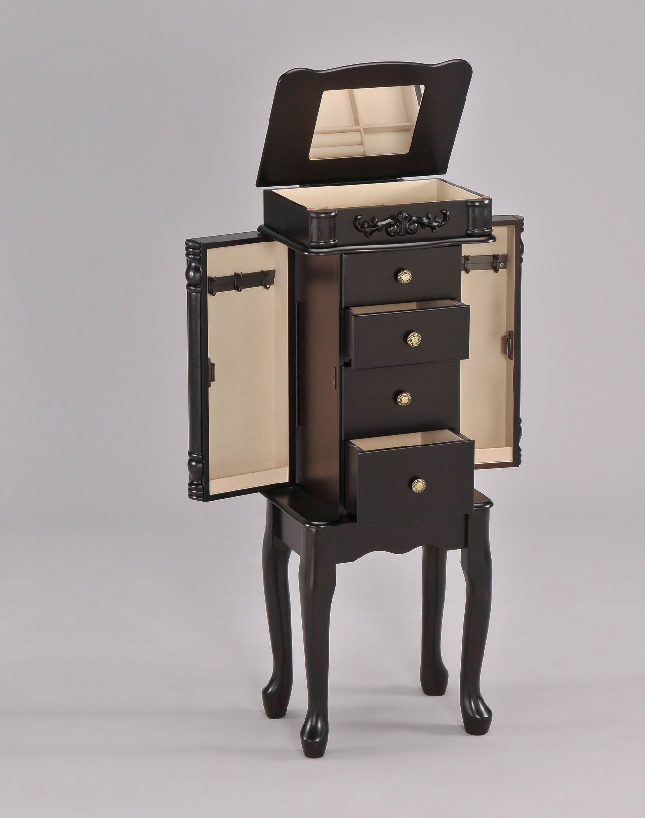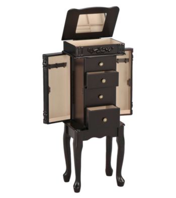 Tiana Jewelry Armoire in Espresso Finish by Acme : Jewelry Storage. World wide web exclusive! A stunningly practical addition to your bedroom, this jewelry armoire features side-swinging doors, four drawers and a top lid with inset mirror, providing ample space for your whole collection. Armoire features top lid with mirror and elegant Queen Anne-design legs Side doors with necklace hooks, plus 4 drawers for other points Durably built from MDF and veneers Exquisite ivory-colored lining Color: espresso 13" x 9" x 35"H Imported We are pleased to present the quality Tiana Jewelry Armoire in Espresso Finish by Acme today at this particular special price.
